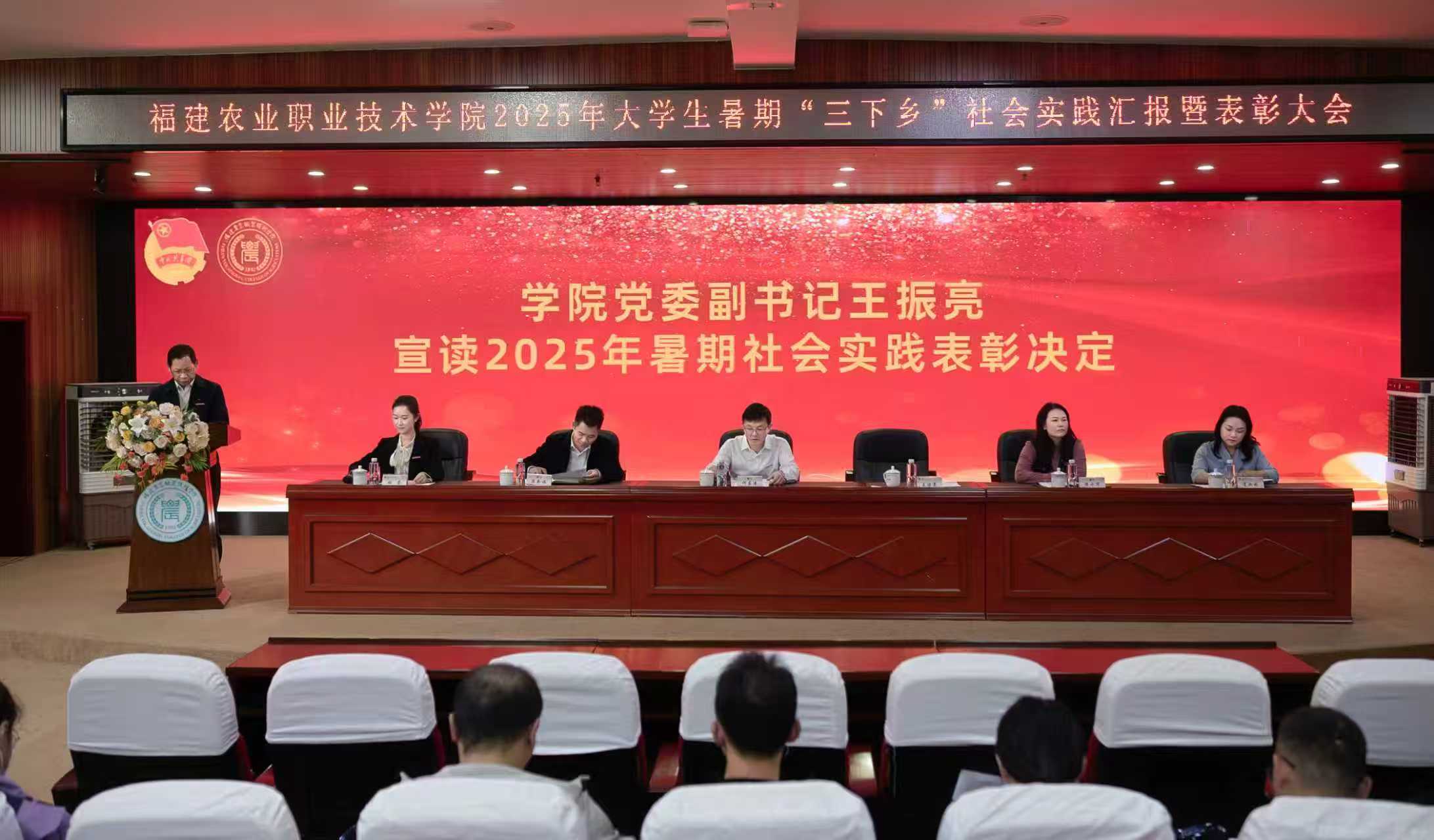 为总结大学生暑期社会实践工作成果,表彰先进典型,激励广大师生在实践中坚定理想信念、锤炼过硬本领,11月12日,学院2025年大学生暑期“三下乡”社会实践汇报暨表彰大会在闽台楼学术报告厅隆重举行。学院党委副书记、院长何东进,学院党委副书记王振亮出席大会,相关处室领导、各二级学院党团组织负责人、受表彰代表及校院两级团学骨干共200余人参加会议。大会由院团委书记林莹主持。