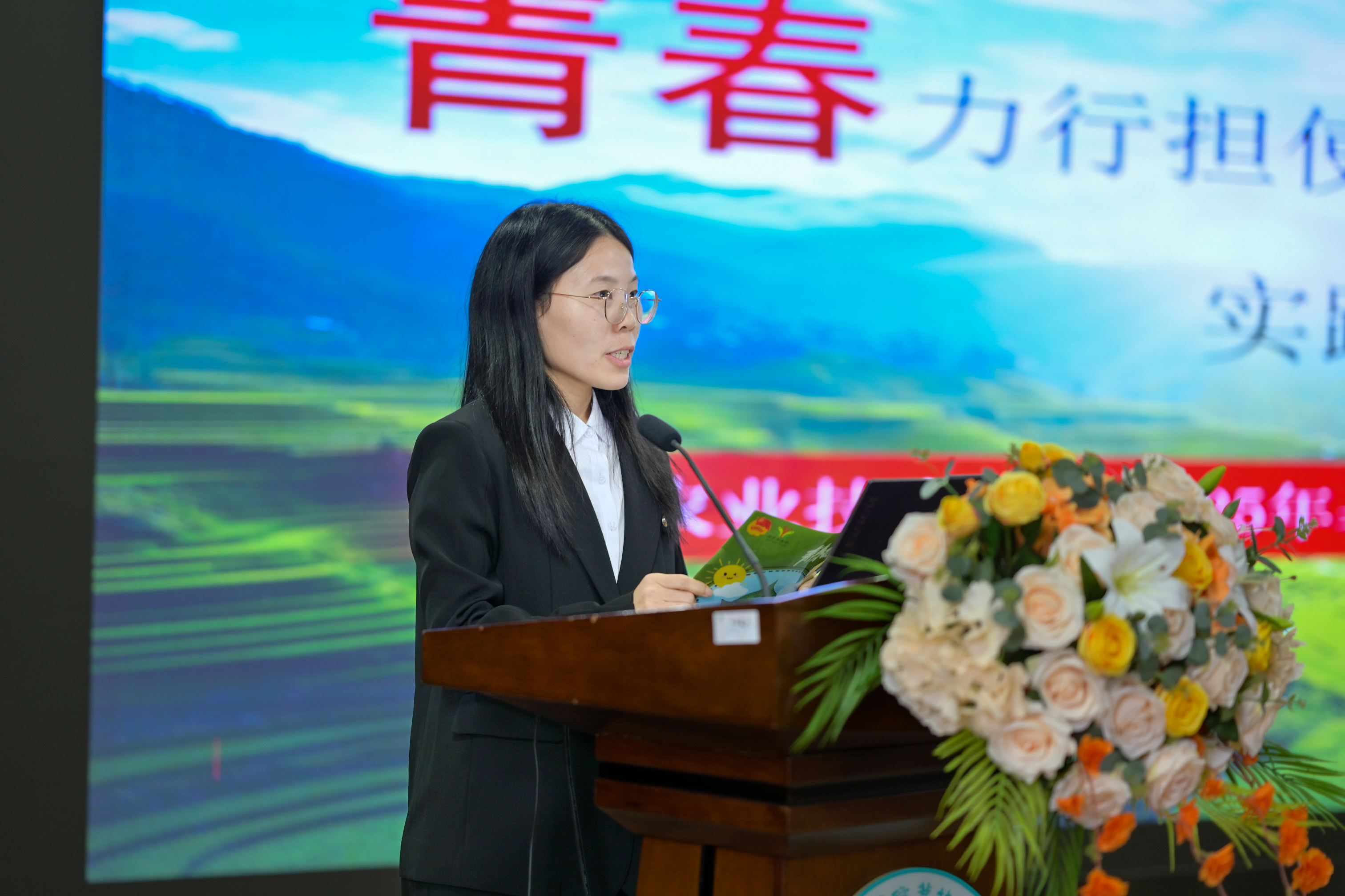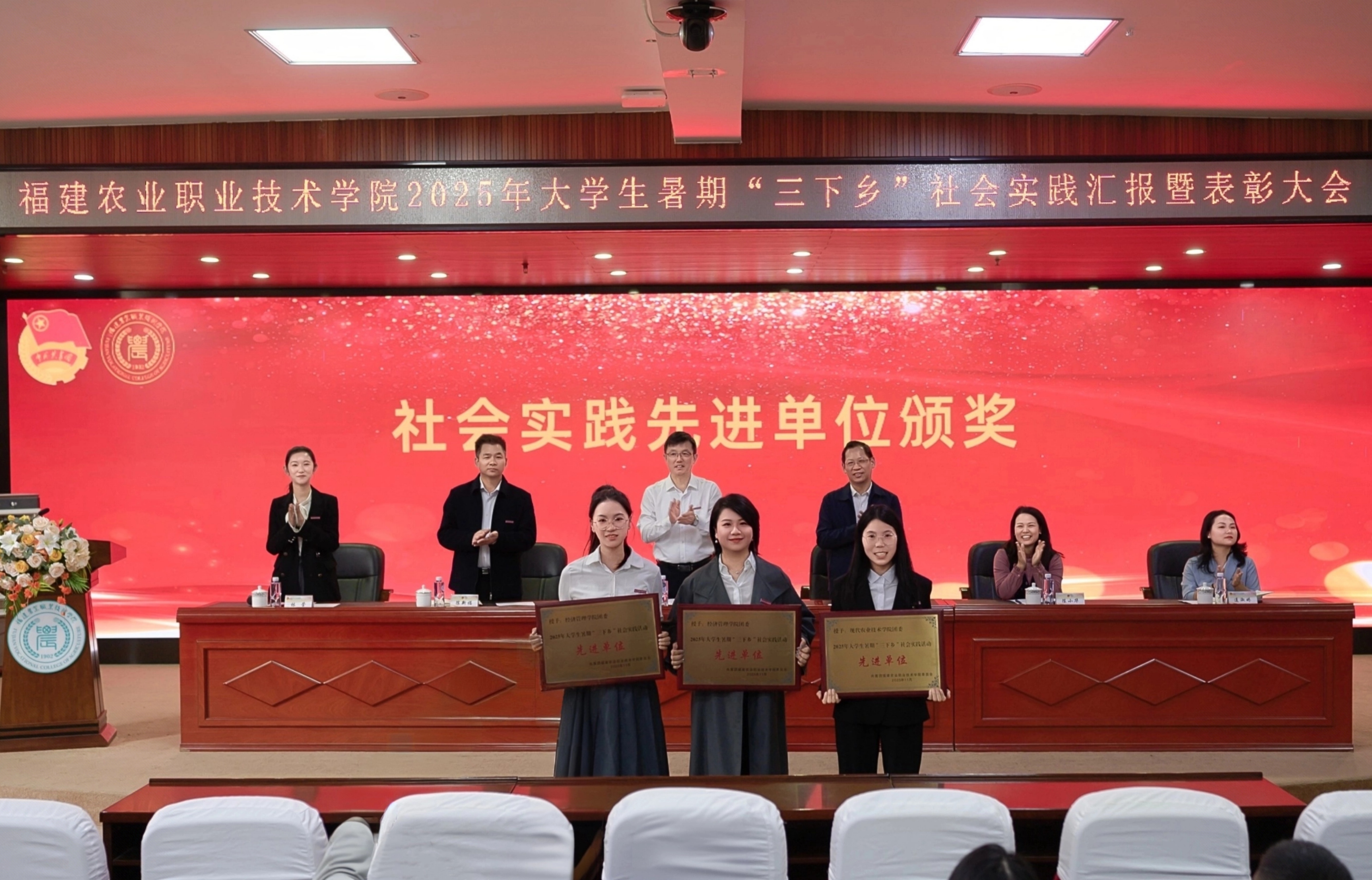 在实践成果汇报环节,社会实践先进单位、优秀实践团队、先进工作者和先进个人代表分别上台汇报暑期社会实践成果,充分将暑期社会实践中的体悟与收获凝练为一场富有思想深度与实践成效的生动呈现。生动再现了福农青年深入基层、服务人民的实践画卷。
