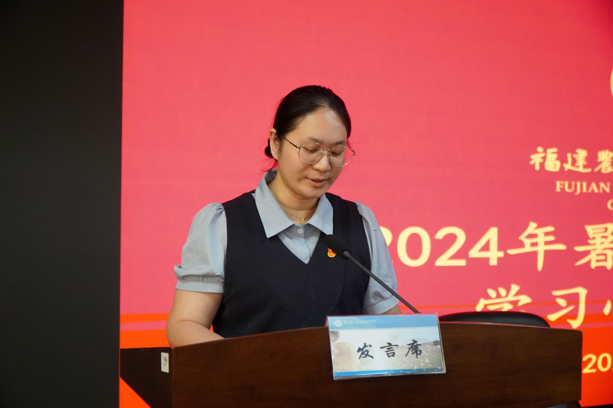 最后还举行了闭班式暨学员学习成果汇报会,学院党委书记杨振坦、党委副书记王振亮出席,会议由党委委员、组织部部长陈新福主持。会上,来自科级干部代表学生工作部副部长陈文坤、动物科技学院教务办主任潘书磊,党务干部代表经济管理学院党总支专职副书记彭阔东、动物科技学院组织员、学生党支部书记林君瑾,辅导员代表现代农业技术学院学工办负责人沈云玉、二轻学院学工办负责人黄琳翔等6位同志结合自身工作实际,进行总结和分享,并对具体工作提出了新的思考和规划。