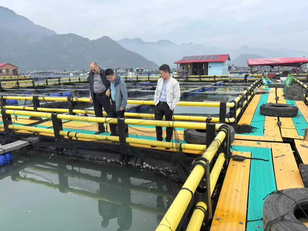 针对企业正在推进的深海网箱养殖项目,陈志实地查看了网箱结构、养殖密度、投喂管理及周边水域环境,并结合实际观测数据,就如何优化养殖布局、改善水体交换、提升养殖效率等方面提供了专业的改善建议与技术指导,以期推动深海养殖模式的转型升级,实现生态与经济效益的双重提升。